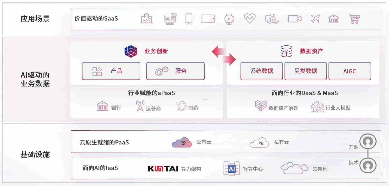 数字时代,,,,围绕企业数字化转型的关键要素,,NO钱包数码开创性的提出数云融合战略和技术体系框架,,着力在云原生、、、、数字原生、、、、AI原生和信创产业上架构产品和服务能力,,,,为处在不同数字化转型阶段的快消零售、、汽车、、金融、、、、医疗、、政企、、、教育、、运营商等行业客户提供泛在的敏捷IT能力和融合的数据驱动能力,,,构建跨界融合创新的数字业务场景和新业务模式,,,,助力企业级客户建立面向未来的核心能力和竞争优势,,,全面推动社会的数字化、、智能化转型升级。。